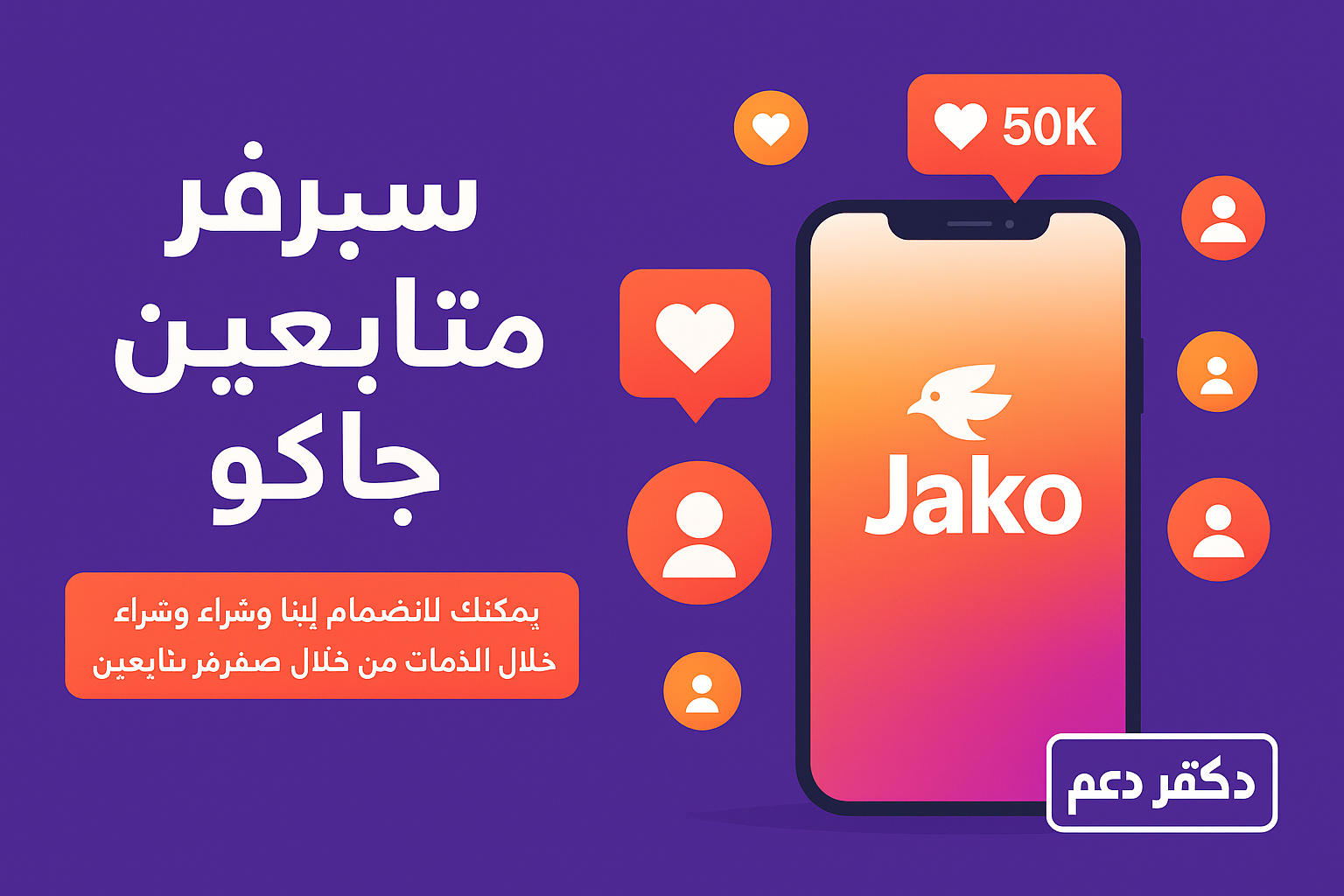 اضغط هنا للانتقال إلى صفحة طلب متابعين جاكو عبر دكتور دعم