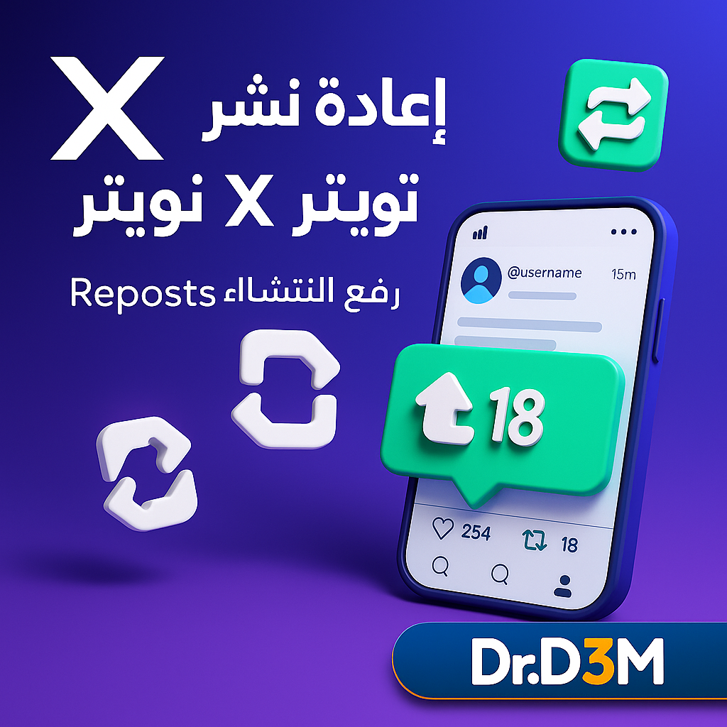 ادعم تغريداتك بعدد أكبر من إعادة النشر Reposts/ Shares على منصة X من خلال نظام دكتور دعم مع تحكم كامل في الكمية والباقات.